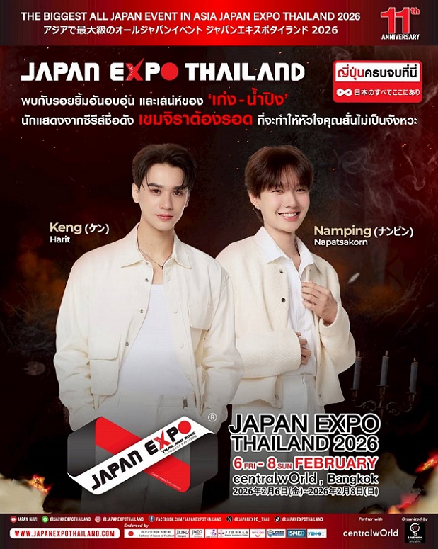 | เตรียมสร้างปรากฎการณ์ห้างแตก!!! “เก่ง-น้ำปิง” เยือนงานมหกรรมญี่ปุ่นที่ยิ่งใหญ่ที่สุดในเอเชีย JAPAN EXPO THAILAND 2026 |