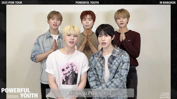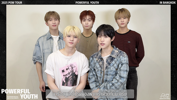 “สวัสดีครับ POW นะครับ ทุกคนพร้อมจะเจอกับอะไรที่ POWERFUL หรือยังครับ พวกเราตื่นเต้นมากสำหรับ 2025 POW TOUR: POWERFUL YOUTH in BANGKOK เป็นทัวร์คอนเสิร์ตครั้งแรกของพวกเราเลยครับ เป็นช่วงเวลาที่เหมาะที่สุด ในการฉลองเดบิวต์ครบรอบ 2 ปีของพวกเรา พวกเรามีอะไรจะโชว์ให้ทุกคนดูเยอะมาก เพราะฉะนั้นมาสนุกไปด้วยกันกับพวกเรานะครับ มาร้องเพลงโปรดของพวกเราด้วยกันนะครับ แฟนๆ เตรียมมาเติม POW กันให้เต็มที่นะครับ พวกเราก็รอเติม POWER จากทุกคนอยู่เหมือนกัน อย่าลืมกดบัตรให้ทัน วันที่ 1 พฤศจิกายนนี้ มาเจอกันที่แจ้งวัฒนะ ฮอลล์ ที่เซ็นทรัลแจ้งวัฒนะ นะครับ มาเติม POW กันนะครับ บ๊ายบาย” ชมคลิปได้ทาง https://youtu.be/QHcR2Rerblw