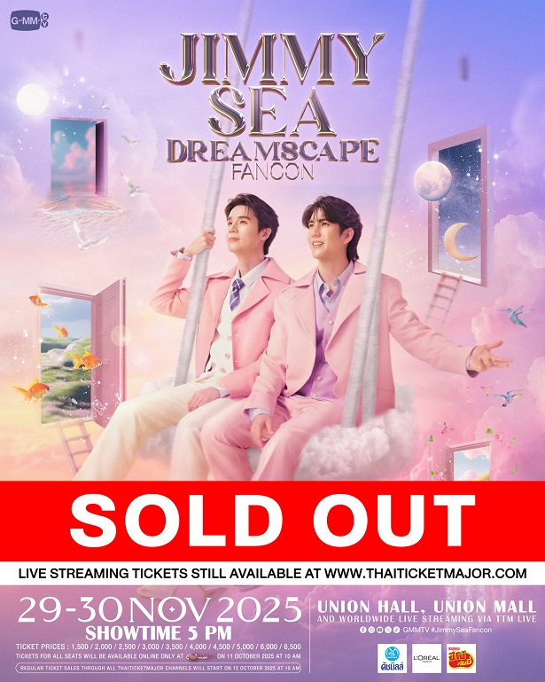 เฟมัสสุดๆ สำหรับ 2 หนุ่มฮอต “จิมมี่ จิตรพล โพธิวิหค” และ “ซี ทวินันท์ อนุกูลประเสริฐ” ที่เพิ่งจบจากซีรีส์คุณภาพสุดปัง “ทำนายทายทัพ My Magic Prophecy” จาก “GMMTV” คอนเทนต์โพรไวเดอร์ชั้นนำ ของเมืองไทย เพราะทันทีที่ประกาศเพิ่มรอบการแสดงงาน “JIMMY SEA DREAMSCAPE FANCON” วันอาทิตย์ที่ 30 พฤศจิกายน 2568 เวลา 17.00 น. ณ ยูเนี่ยน ฮอลล์ ชั้น F6 ศูนย์การค้ายูเนี่ยน มอลล์ ก็สร้างปรากฏการณ์สุดร้อนแรง แฟนๆ ให้การตอบรับแบบถล่มทลาย ทำเอาบัตร Sold Out อย่างรวดเร็ว เรียกว่าบัตร Sold Out ทั้ง 2 รอบการแสดงภายในวันเดียว
