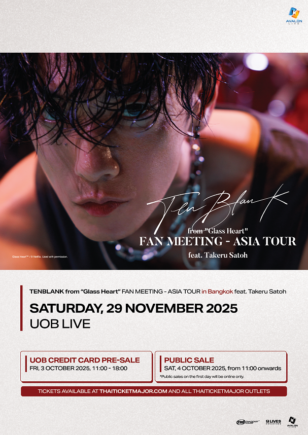 | แฟนๆ ชาวไทยเตรียมเฮ! ได้เวลาเดินตามจังหวะหัวใจ ไปพบกับพระเอกแถวหน้าของญี่ปุ่น ทาเครุ ซาโต้ ในงาน TENBLANK from "Glass Heart" FAN MEETING - ASIA TOUR in Bangkok feat. Takeru Satoh แฟนมีตติ้งนอกประเทศครั้งแรกที่ทุกคนรอคอย! |